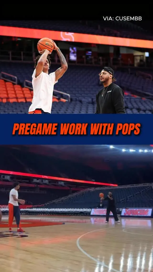 Kiyan Anthony putting in work with his dad, Carmelo, ahead of tonight’s game. 🍊